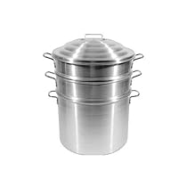 This steamer set is constructed of heavy-duty aluminum to handle wear and tear. The steamer section has 7/8" sized perforations for maxium steaming capability while the domed cover directs condensation down the sidewalls. . This steamer set includes: Town Food steamer cover 34512 Town Food water pan 34612 Two Town Food steamers 34412.[]More detail ...